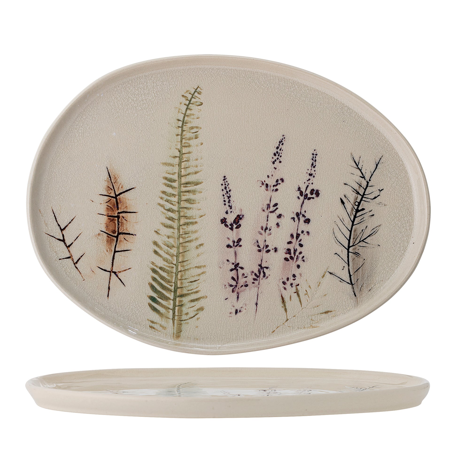Die Bea Servierplatte von Bloomingville besticht durch ihr elegantes Design aus hochwertigem Steingut in natürlichen Farbtönen. Das zarte, handdekorierte Blumenmotiv auf der feinen, krakelierten Glasur verleiht jedem Stück eine individuelle Note und macht es zu einem besonderen Highlight auf Ihrem Tisch. Praktisch und stilvoll zugleich, ist die Platte spülmaschinenfest und somit ideal für den täglichen Gebrauch oder besondere Anlässe.